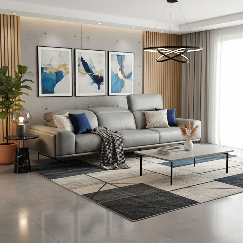 10560-4-Seater-Grey Leather Sofa