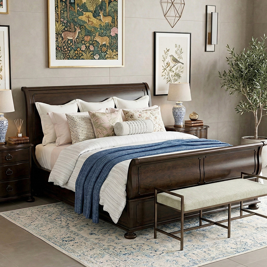 [ OUTLET ] River House 39375B King Sleigh Bed ( 침대 + 협탁 + 화장대 )
