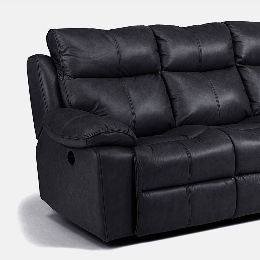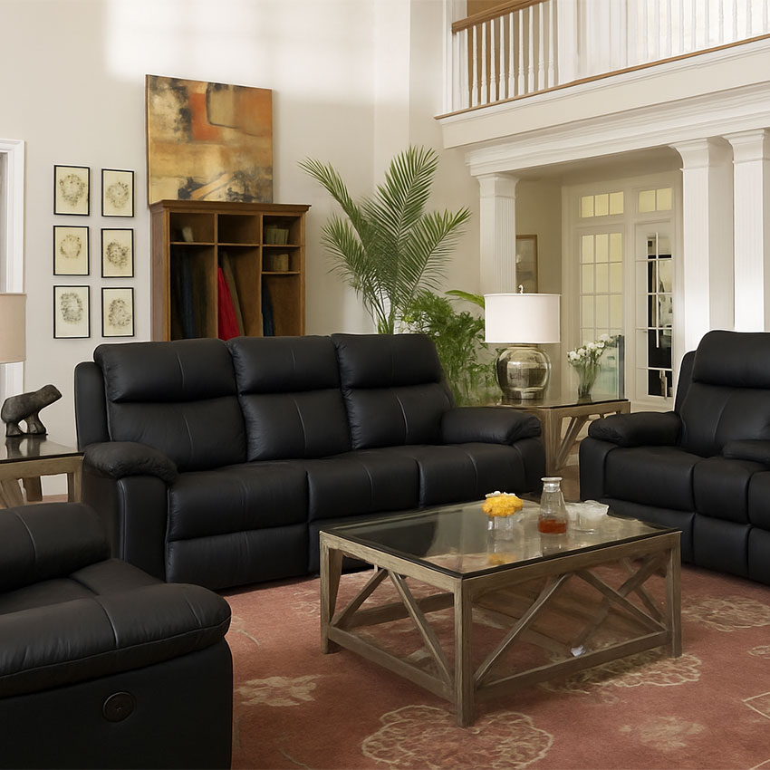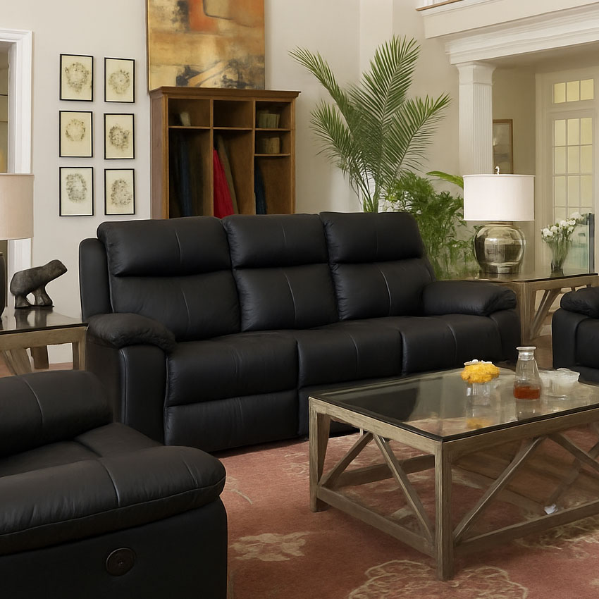 1320-62 Black Leather Recliner Sofa