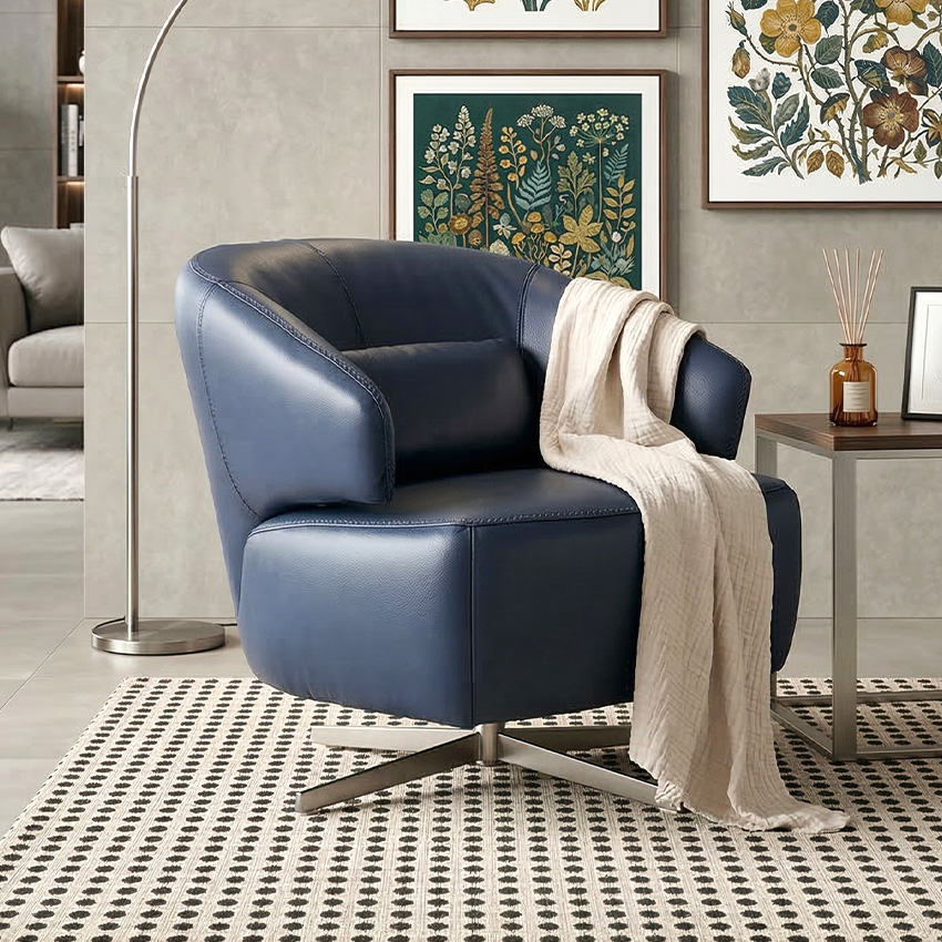 12812-NVY Leather Swivel Chair